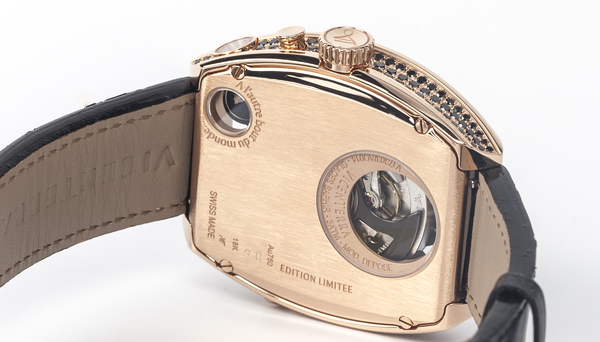 | Strap | Black leather strap with red gold buckle |
